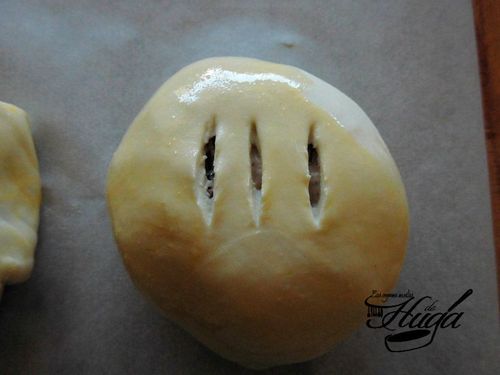 Pintamos de huevo el borde del círculo de hojaldre y vamos plegando los bordes sobre el medallón de solomillos, para dejar el paquetito cerrado, colocaremos nuestros paquetitos sobre una bandeja de hornear con papel de hornear con el lado del cierre hacia abajo. Introducimos la bandeja en la nevera durante 15 minutos, tiempo que aprovecharemos para precalentar el horno a 200ºC. Transcurridos estos 15 minutos los retiraremos de la nevera, los pintaremos con huevo y les haremos 3 pequeños cortes en la parte superior para que respiren y los introduciremos en el horno durante 15 minutos aproximadamente o hasta que estén dorados.